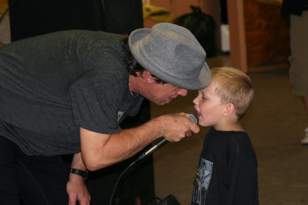 I figure the people must have some kind of fond memories of Katy, because the crowd is cheering as Katy humps Brian’s leg through the chorus of “Talk Dirty to Me.” It’s hard to believe that the Stahlman Park Recreation Center is bearing witness to such a queer spectacle. These two old friends feed each other’s energy, and their duet shifts the mood in the room. Waylon, for one, is out of his seat and dancing. As the band makes its way through original numbers like “Sweet Sixteen” and “You Make Love Too Tough,” he bounces and bangs his head. Occasionally he throws in some Kung Fu moves and King Tut poses. Every time he gets too close to the band, I have to run up in front of the folding chairs and drag him out of the spotlight. “That’s Katy Koonce’s lesbian lover,” I imagine the old woman saying to her husband. “And their gay love child!”