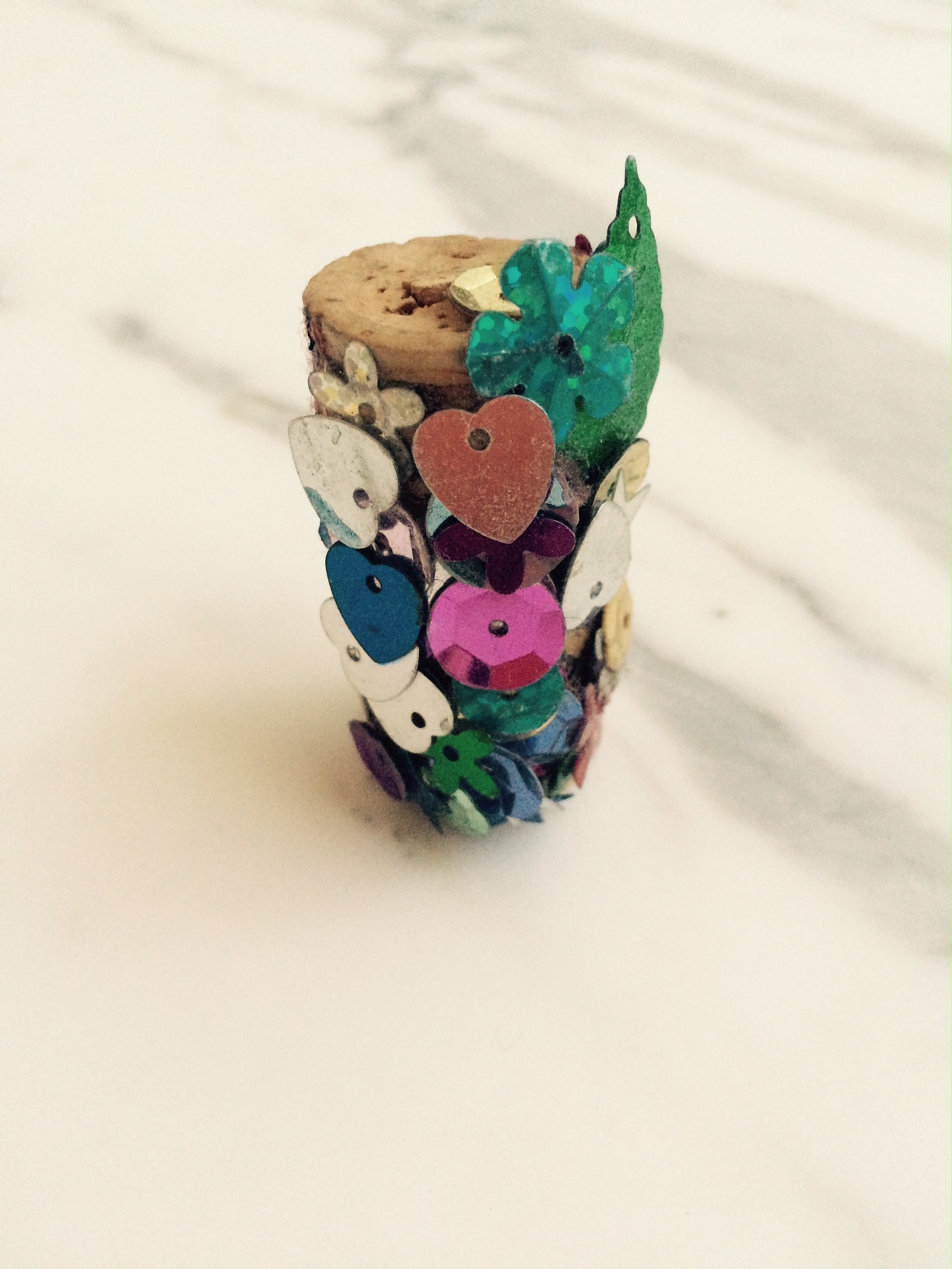 “Oh, okay. That’s good.” I picked up a few stray sequins and put them back in his pile.